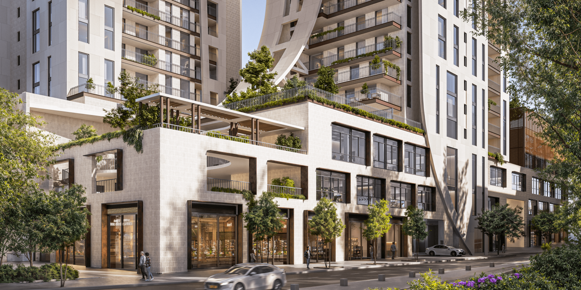 A commercial floor faces Bar Yochai Street, above it are planned 2 floors consisting of public buildings with a total area of 2,000 square meters and including an inner courtyard and a green roof.